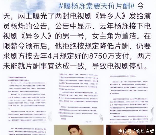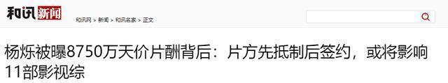 和讯新闻:杨烁被曝8750万天价片酬背后:片方先抵制后签约,或将影响11部影视综
